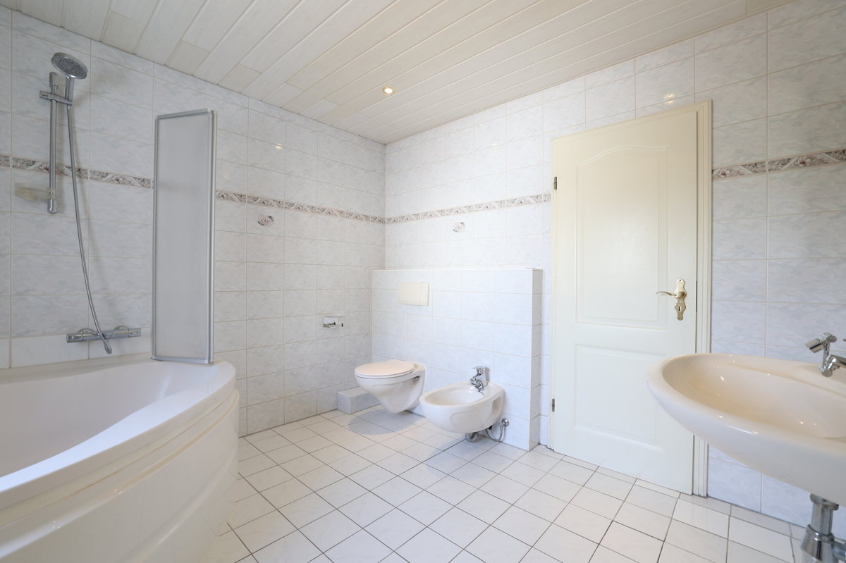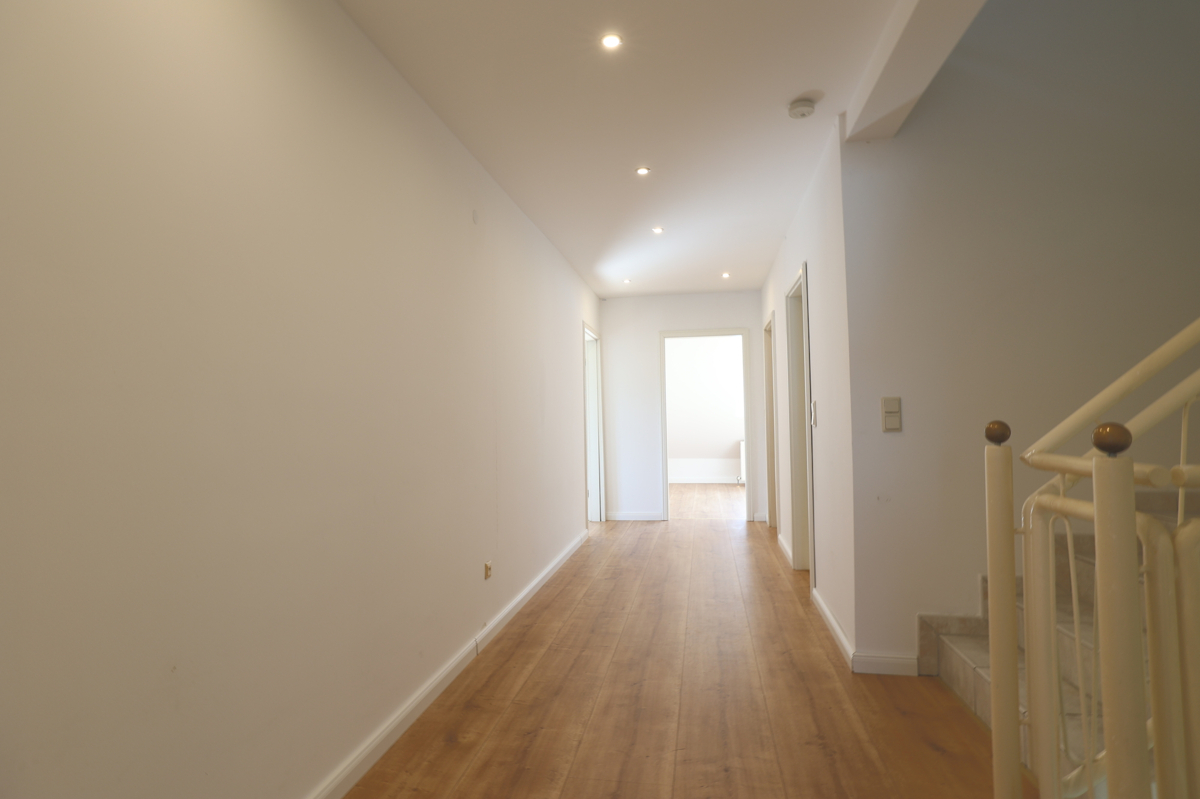 Das Obergeschoss beherbergt drei weitere Schlafzimmer, die durch ihre Helligkeit und den großzügigen Schnitt überzeugen. Besonders hervorzuheben sind die zwei Badezimmer auf dieser Etage. Das Hauptbadezimmer ist direkt mit dem Elternschlafzimmer verbunden und bietet eine Dusche für höchsten Komfort. Ein weiteres Badezimmer mit Dusche steht den anderen Schlafzimmern zur Verfügung. Ein zusätzlicher Abstellraum bietet wertvollen Stauraum.