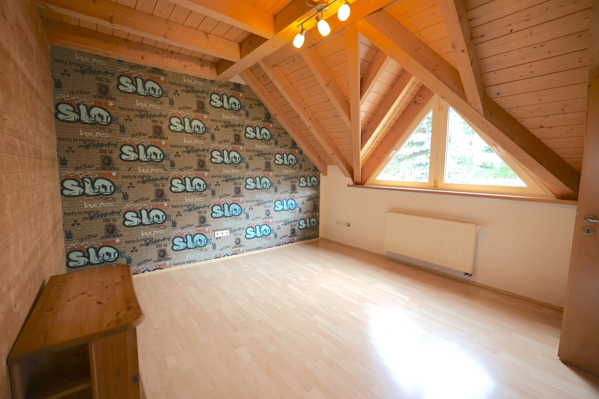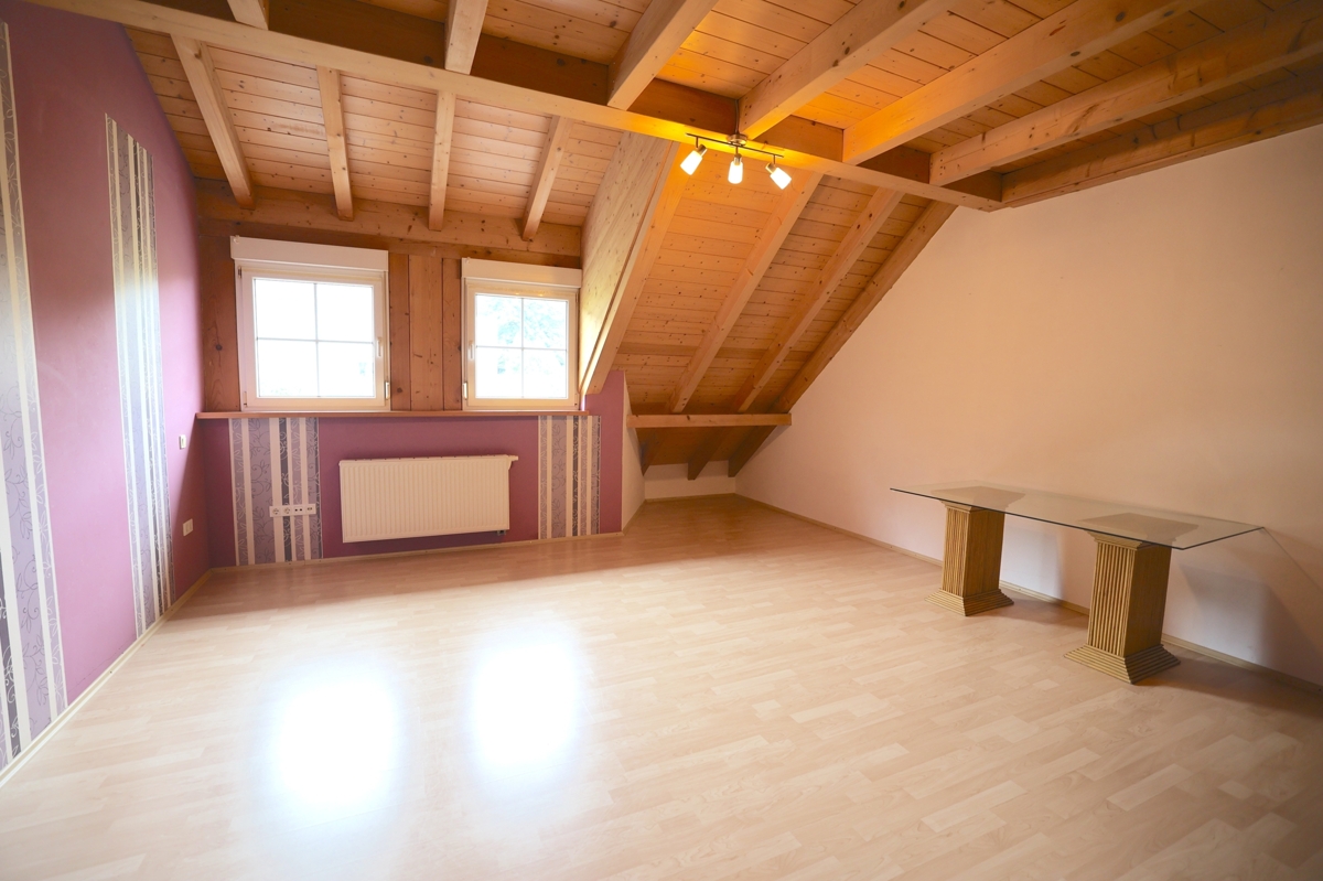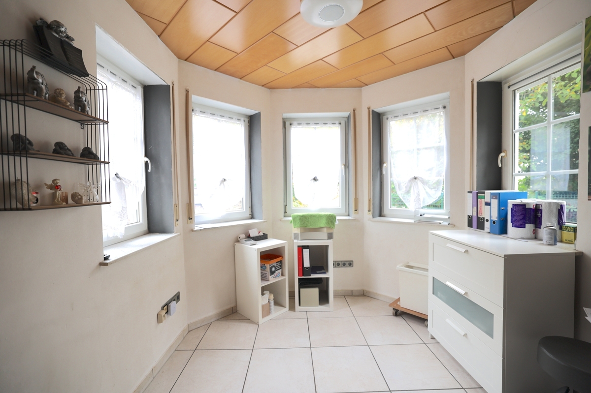 Ein großes Zimmer, das aktuell als Hobbyraum genutzt wird, ein gemütliches Schlafzimmer, eine Küche sowie ein Badezimmer mit Dusche machen diesen Bereich zu einem eigenständigen Wohnbereich mit viel Potenzial.