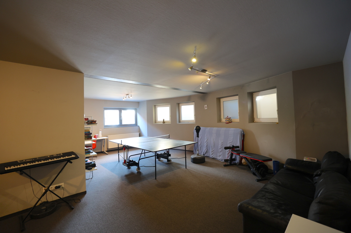 Das Untergeschoss kann vielseitig genutzt werden. Dort befindet sich ein sehr großer Raum mit Tageslicht und angrenzendem Schlafbereich sowie einem modernen Badezimmer mit begehbarer Dusche, WC und Waschbecken.