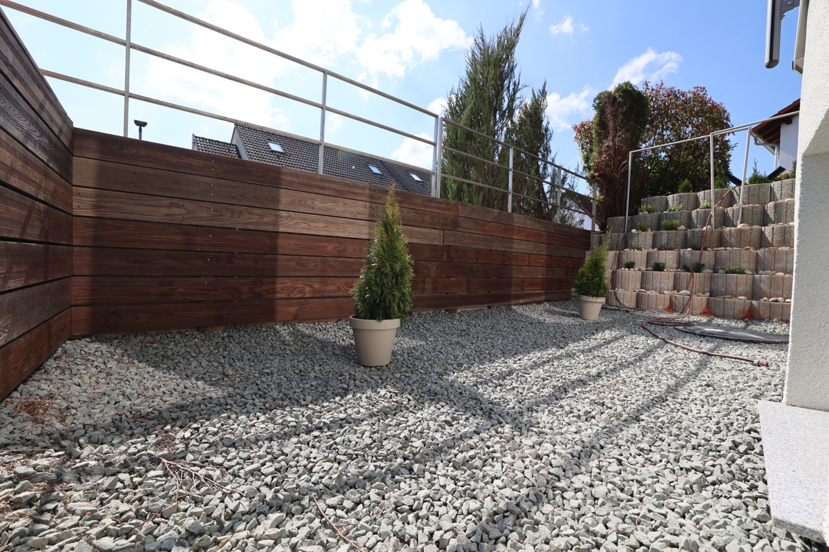 Drei sonnige Terrassen laden zu entspannten Stunden im Freien ein und bieten einen herrlichen Blick auf den großzügigen Garten.
