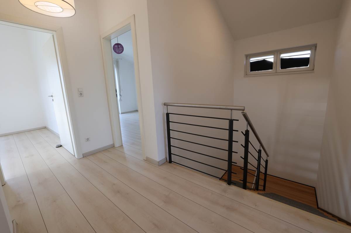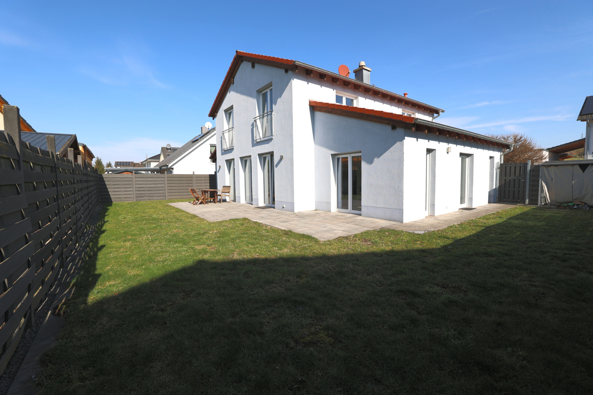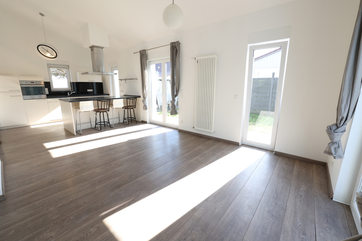 Dieses moderne Einfamilienhaus aus dem Jahr 2012 bietet auf insgesamt 4 Zimmern ein durchdachtes Raumkonzept für Familien. Im Obergeschoss befinden sich drei Räume, die unter anderem ein geräumiges Schlafzimmer sowie ein modern ausgestattetes Badezimmer umfassen. Im Erdgeschoss erwarten Sie ein hell gestalteter, großer Wohn- und Essbereich, der nahtlos in die moderne Küche übergeht – ideal für gemeinsame Kochabende und geselliges Beisammensein. Eine einladende Terrasse mit einem gemütlichen Garten lädt zum Entspannen im Freien ein. Zudem sorgt der direkte Zugang zur Garage, der auch vom Haus aus möglich ist, für hohen Komfort, ergänzt durch zwei zusätzliche Stellplätze.Lagebeschreibung: