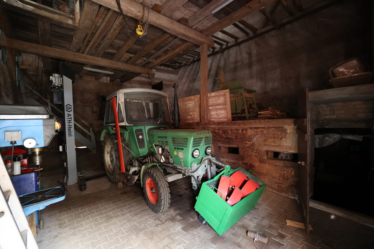 Der große, Innenhof ist ein echtes Highlight: Zwei Garagen, eine kleine Werkstatt und eine imposante Scheune bieten vielfältige Möglichkeiten zur Nutzung – ob als Lager, Werkraum oder für Ihre Hobbys. In der Scheune befindet sich eine Hebebühne- Ideal für alle Hobby - Automechaniker.